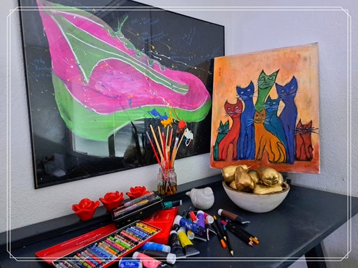 Ich male für mich und habe keine Ambitionen Bilder auszustellen. Wenn jemand ein Bild wünscht, mache ich das gerne,
